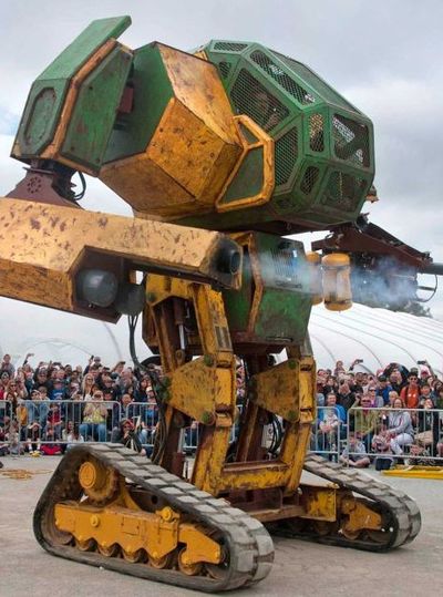 Ce modèle de robot de combat nous a particulièrement séduit; malheureusement, le règlement est très clair: le robot ne peut pas utiliser de projectile, ni de gaz, ni de matière vivante. Comme un opérateur cliniquement mort à l'intérieur du robot n'est pas très utile nous avons abandonné cette idée pour lui préférer un projet un tantinet moins tape à l'oeil et plus simple (comme une étoile de la mort).